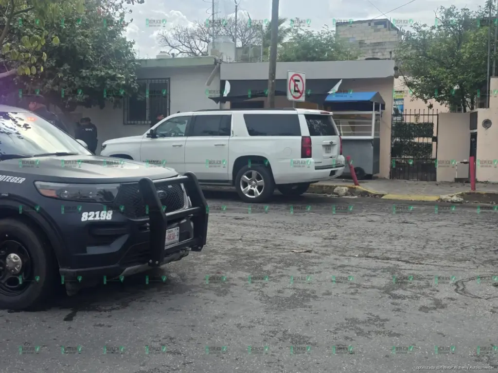 Varias patrullas de la Policía Municipal rodearon esta camioneta Chevrolet Suburban blanca, en la avenida Constituyentes con Diagonal 85, a eso de las 10 de la mañana, en respuesta a la detección de que este vehículo tenía reporte de robo. Sin embargo, al detenerlo, vieron que de esta camioneta bajaron nueve turistas estadounidenses, quienes llegaron el día anterior a Playa del Carmen.