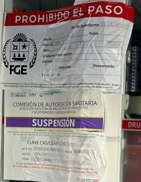 Inspectores de la Comisión Federal de Protección contra Riesgos Sanitarios (Cofepris), acompañados de agentes de la Fiscalía General del Estado (FGE) hicieron una revisión de incógnito por la zona turística de Playa del Carmen, el pasado miércoles, para regresar la mañana de este jueves ya con los sellos listos para clausurar estos cinco establecimientos.